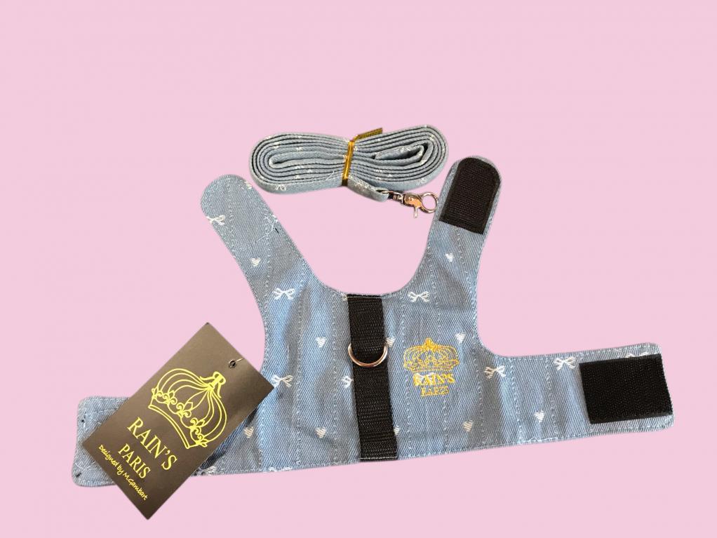 Gilets Harnais avec sa laisse (Jean brodé) NOUVEAU