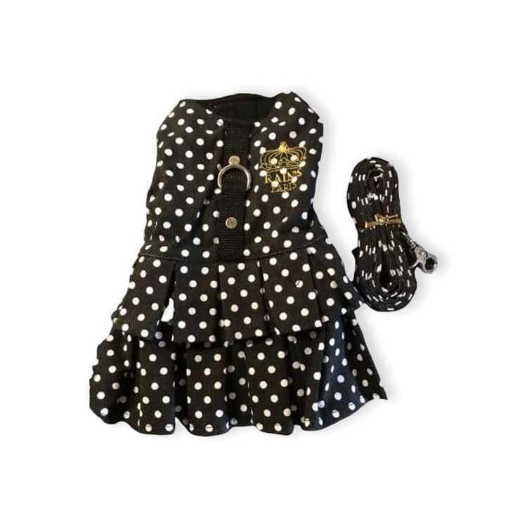 Gilets et robes harnais - Robe harnais hiver noir pois blanc laisse 4/5