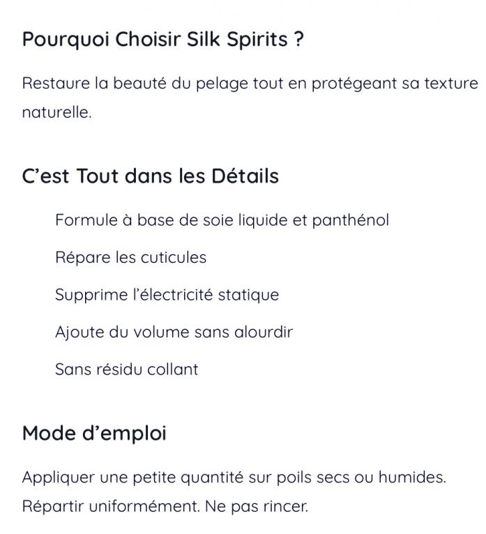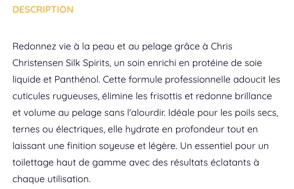 Rare de trouver de la protéine de soie Silk spirits en contient.