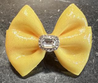 NOEUD BRILLANT SEMI RIGIDE NOUVEAUX - Jaune clair réf X2 strass et pierre rectangulaire 4 cms