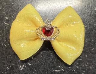 NOEUD BRILLANT SEMI RIGIDE NOUVEAUX - Jaune clair ref X8 coeur rouge dans couronne or 4,5 cms