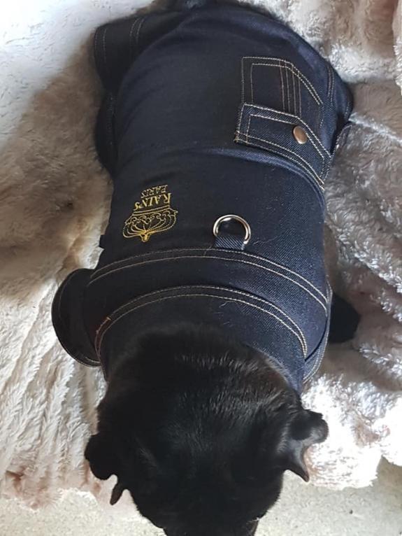 Avec des petites décos (pattes de deco avec boutons sur les côtés) (poche sur le dessus et logo brodée de ma marque) qui feront que votre toutou ne passera pas inaperçu dans la rue.