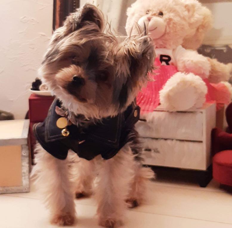 Avec des petites décos (pattes de deco avec boutons sur les côtés) (poche sur le dessus et logo brodée de ma marque) qui feront que votre toutou ne passera pas inaperçu dans la rue.