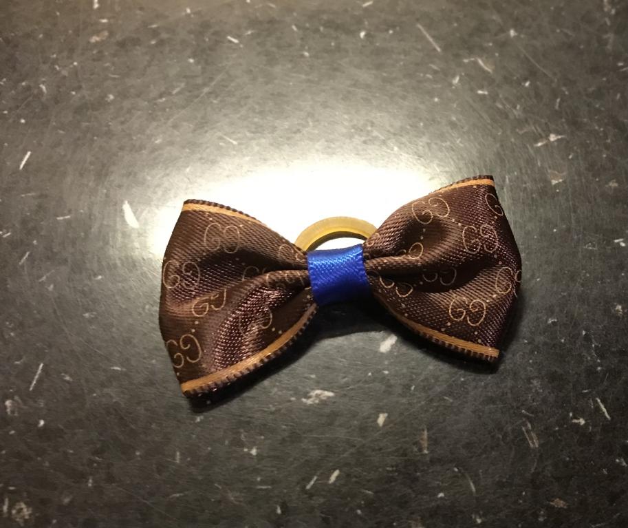 Noeuds fantaisies et chapeaux - Noeud Gucci marron et or coeur bleu élastique lettre w