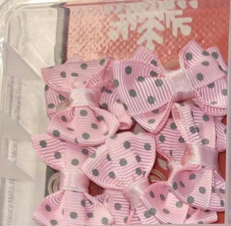 Noeuds baby puppy satin ou velours - Noeud satin à pois rose et gris fabriqués en france