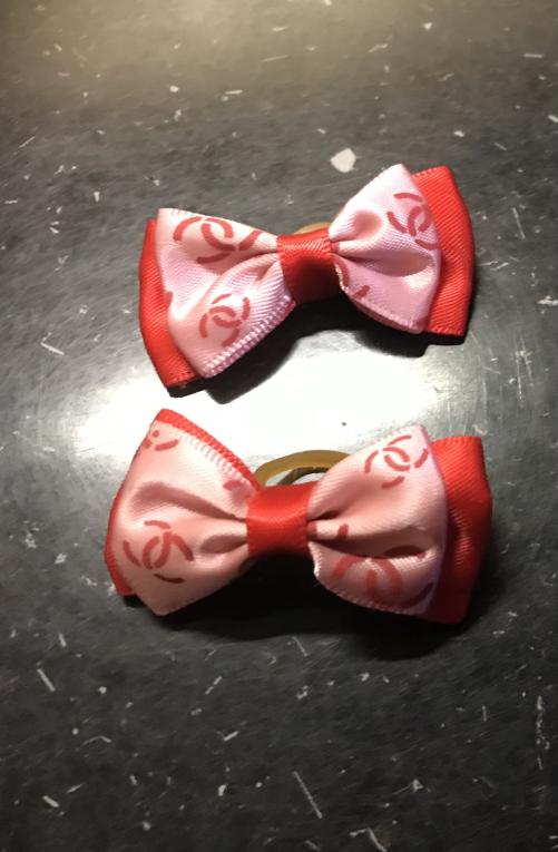 Noeud Chanel double rose et rouge élastique lettre B