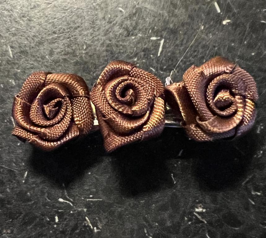 3 roses marron sur barettes