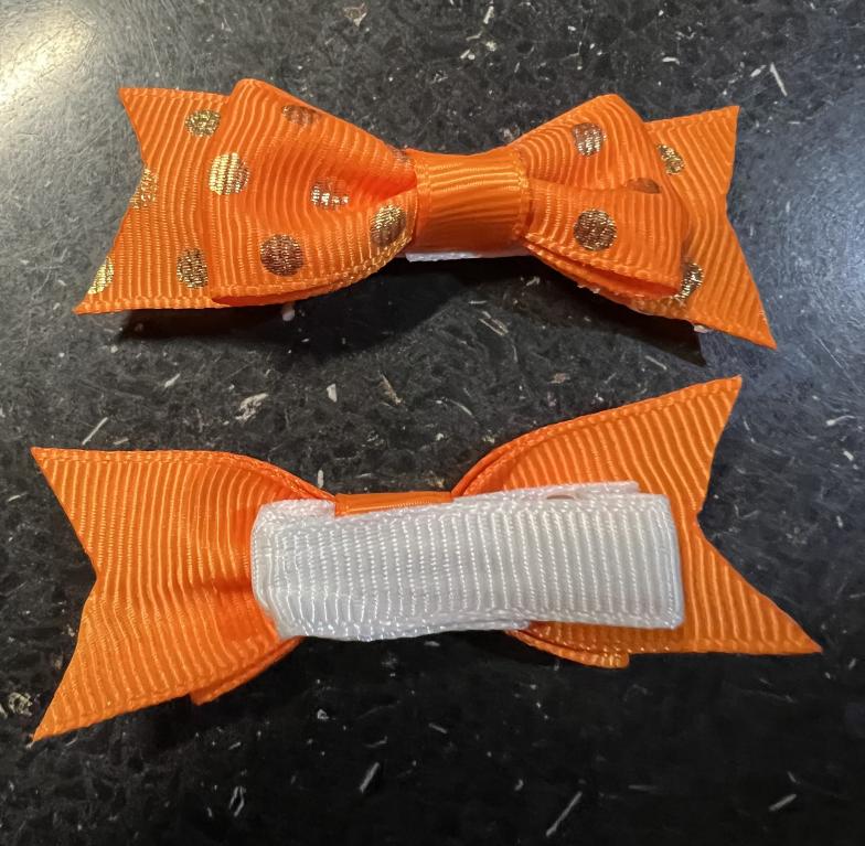 Noeuds oranges pois or sur pince crocodile