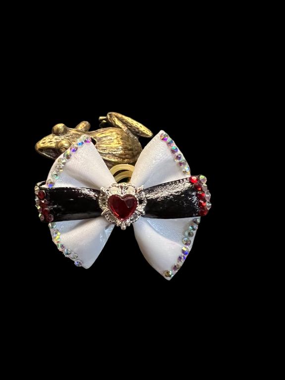 NOEUD BRILLANT SEMI RIGIDE NOUVEAUX - blanc et noir coeur rouge N° 8 bis 5 cms