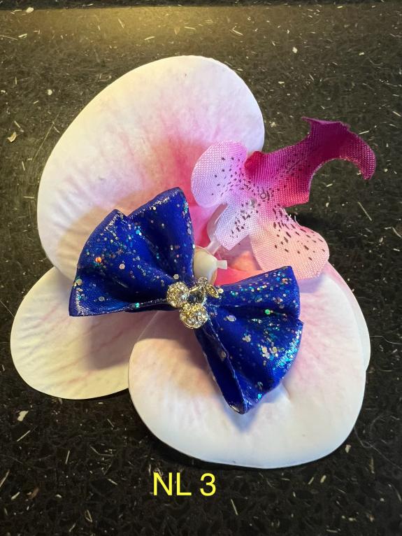 NOEUD BRILLANT SEMI RIGIDE NOUVEAUX - Bleu nuit NL 03 fleurs cerisier strass argent 5 cms