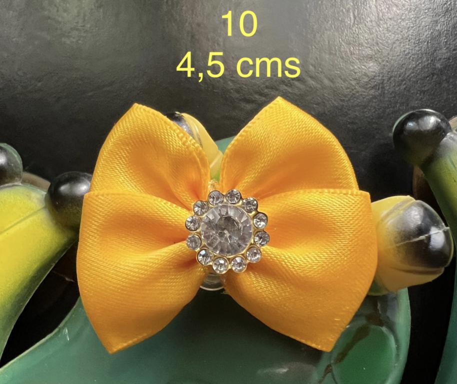 NOEUD BRILLANT SEMI RIGIDE NOUVEAUX - Jaune d’or 4,5 cms n° 10pierre ronde et strass argent
