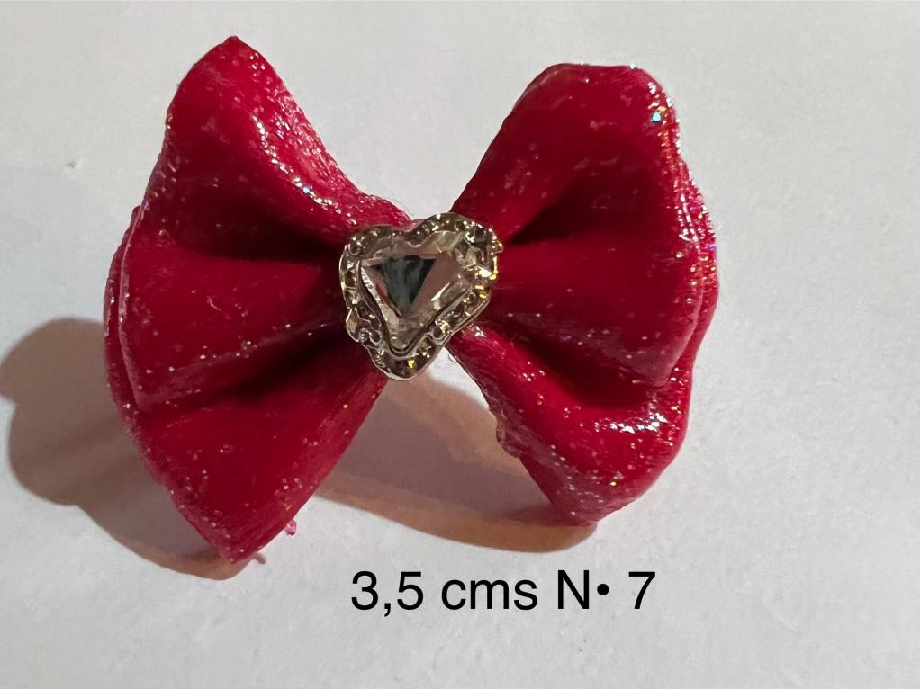 NOEUD BRILLANT SEMI RIGIDE NOUVEAUX - Fuschia N7 coeur argent et strass 3,5 cms
