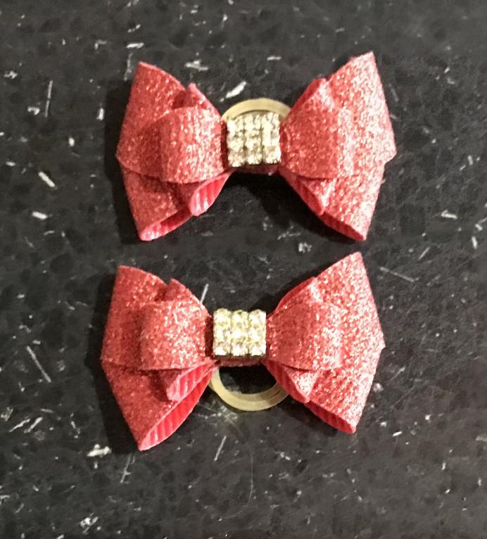 NOEUD BRILLANT SEMI RIGIDE NOUVEAUX - Rouge NL33 brillant avec cabochon 9 brillants 3,5 cms