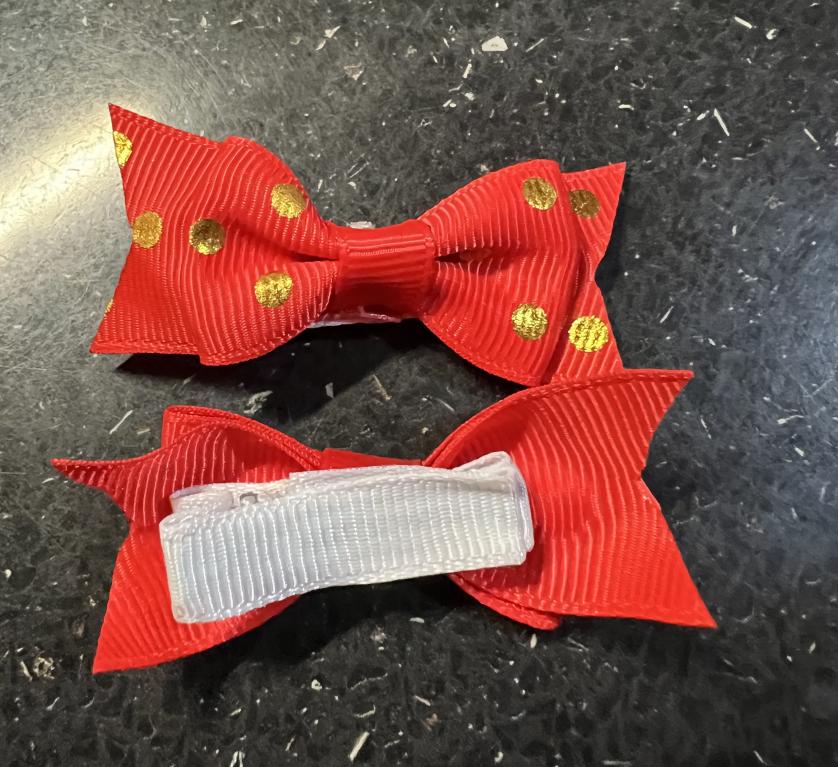 Noeuds rouges pois or sur pince crocodile