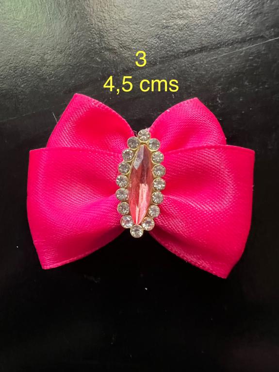 NOEUD BRILLANT SEMI RIGIDE NOUVEAUX - Fuschia N° 3 pierre ovale rose et strass arrgent 4,5 cms