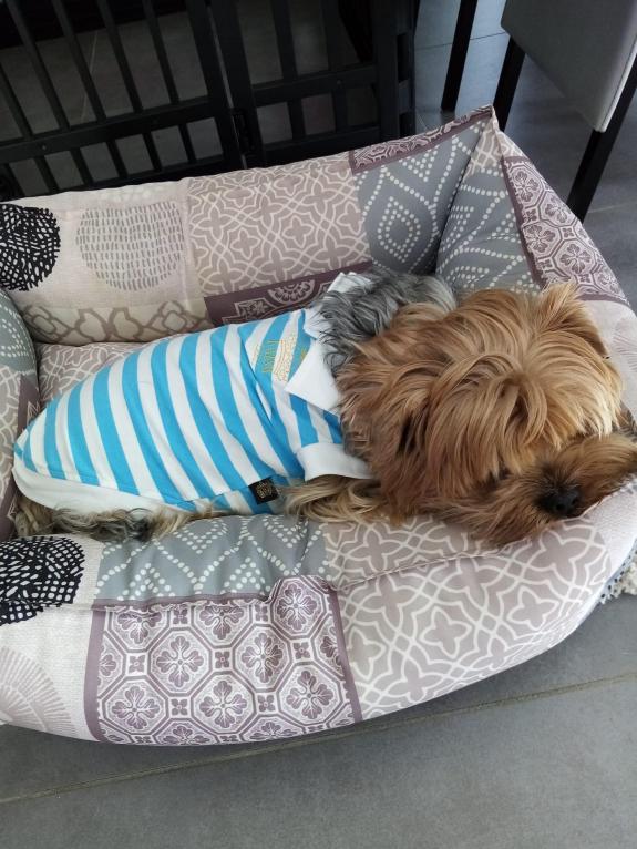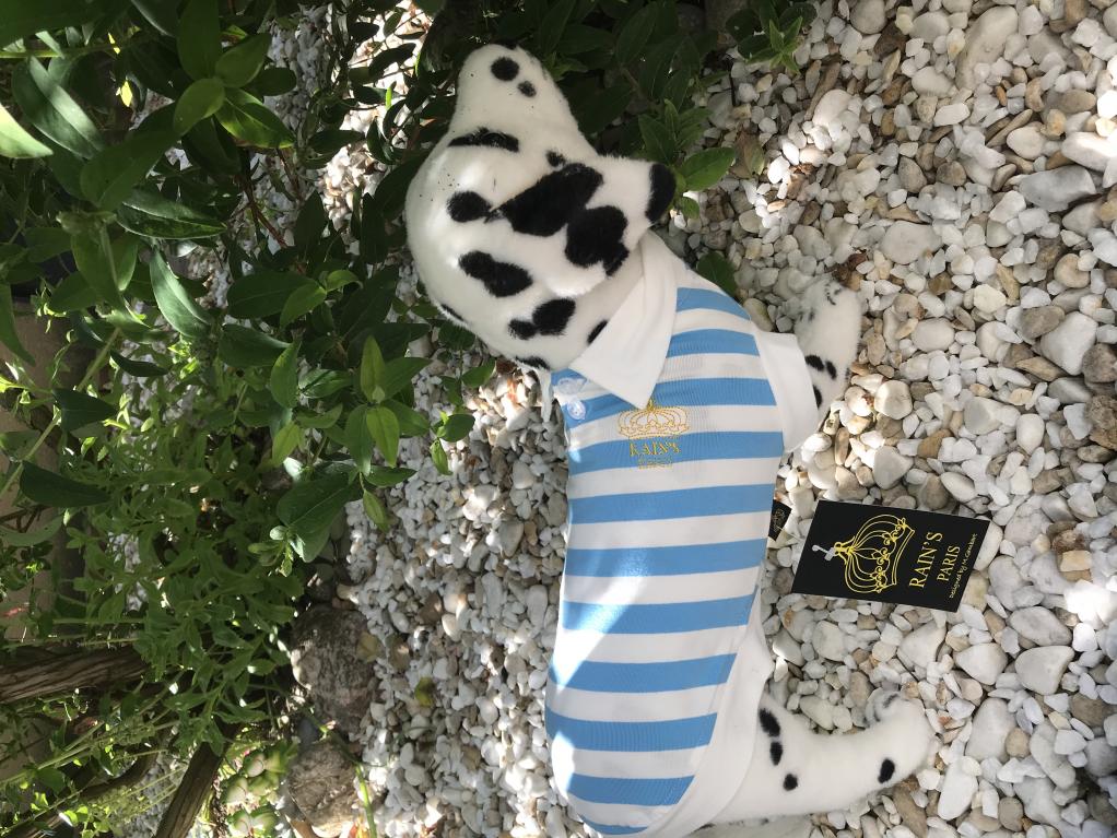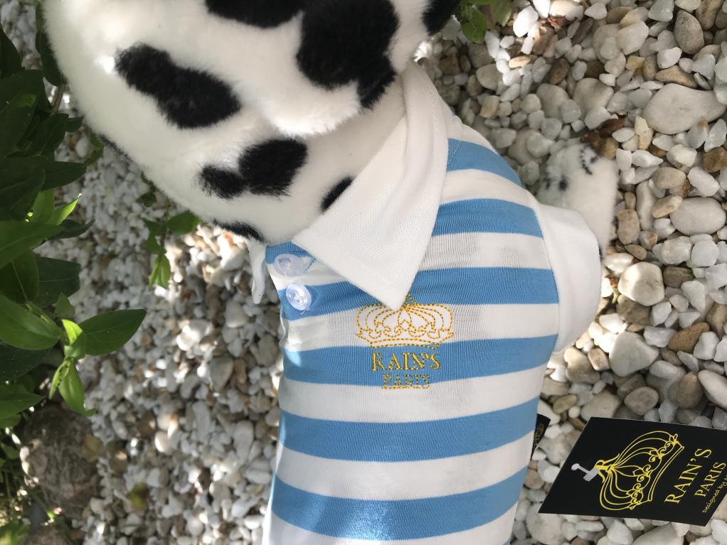 col, emmanchures, entourage blanc. Goutte d'eau pour la laisse.