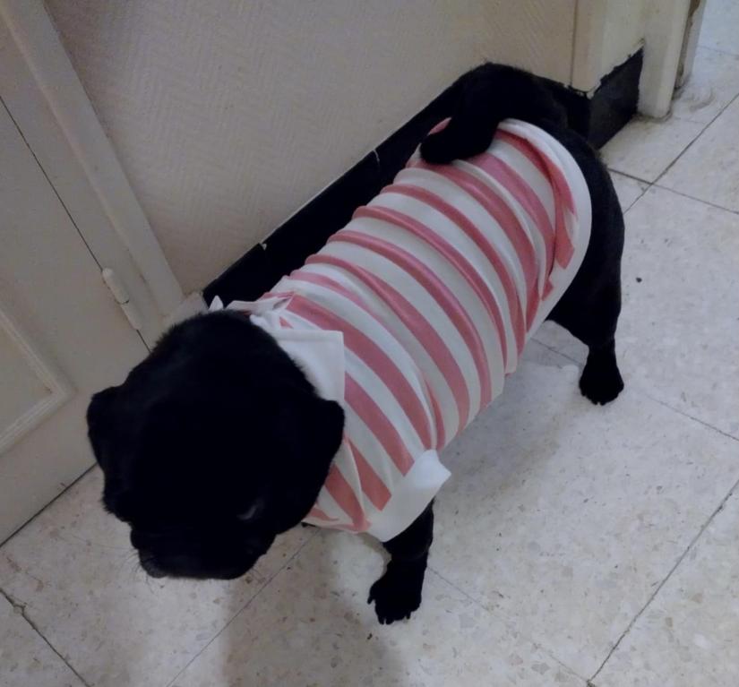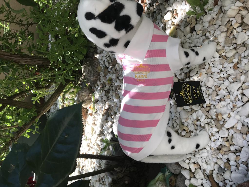 col, emmanchures, entourage blanc. Goutte d'eau pour la laisse.