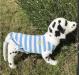 col Claudine, emmanchures, entourage blanc. Goutte d'eau pour la laisse. Petit volant.