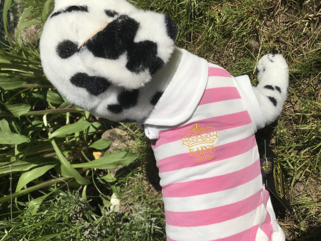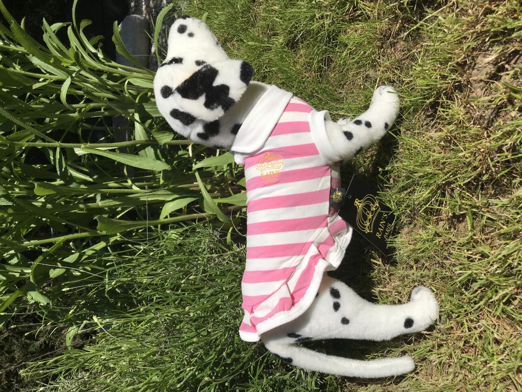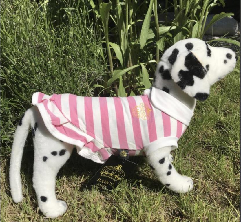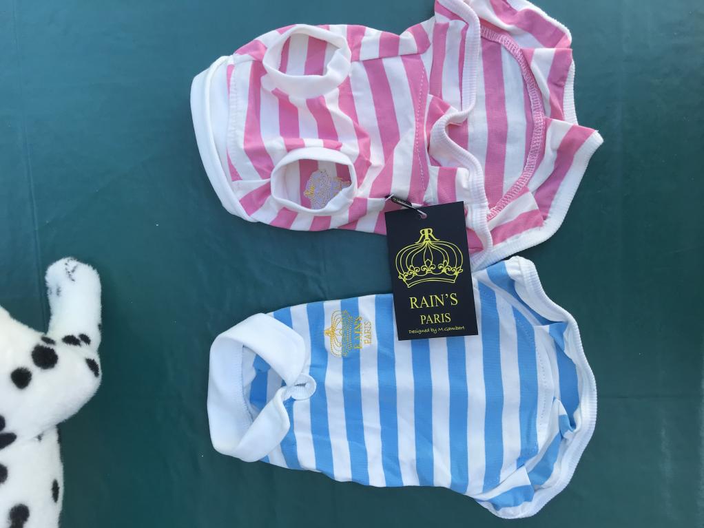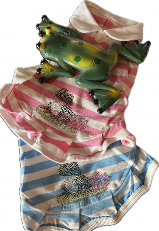 col Claudine, emmanchures, entourage blanc. Goutte d'eau pour la laisse. Petit volant.