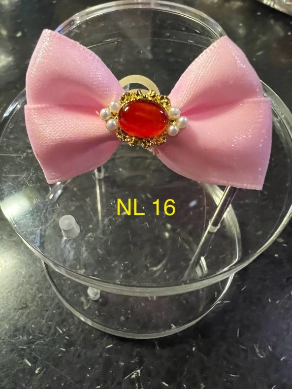 NOEUD BRILLANT SEMI RIGIDE NOUVEAUX - Rose pale NL 16 cabochon ovale rouge + perles 4,5 cms