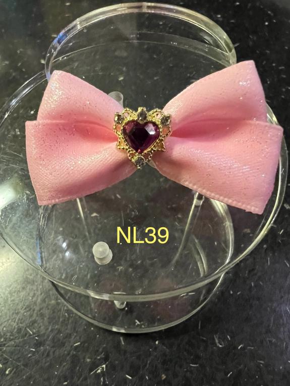 NOEUD BRILLANT SEMI RIGIDE NOUVEAUX - Rose pale NL 39 coeur violet et or + pierres 4,5 cms