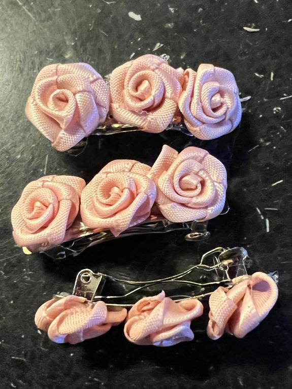 Noeuds fantaisies et chapeaux - 3 roses rose sur barette